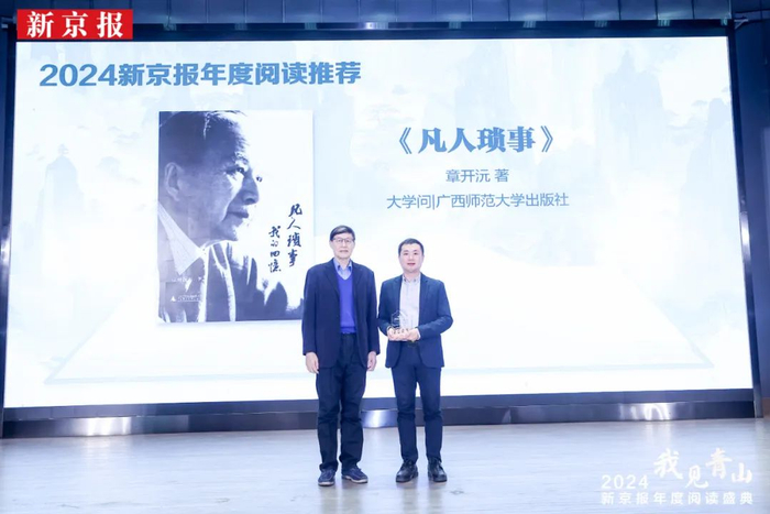 刘北成教授为《凡人琐事》颁奖。(2024新京报年度阅读盛典的活动现场)