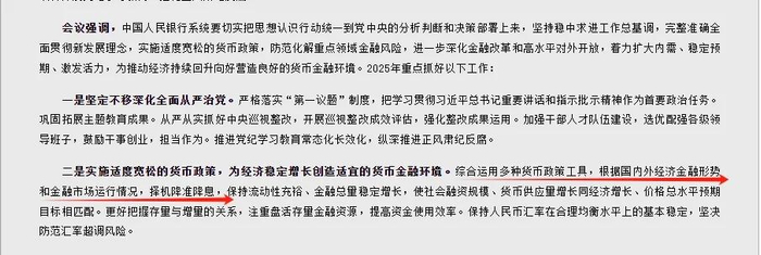 同时,在对2025年的展望中,央行表示将会落实好适度宽松的货币政策。