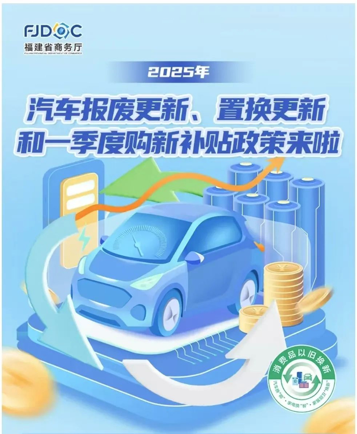 记者从福建省商务厅获悉,2025年福建汽车报废更新、置换更新和一季度购新补贴政策出台。