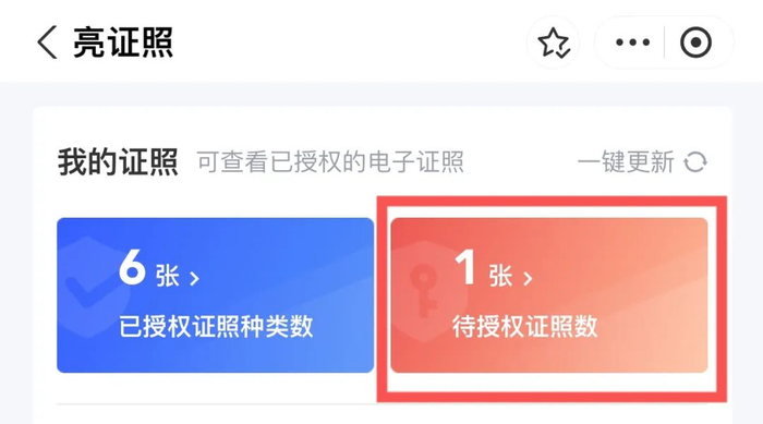 (1)若未授权,点击“待授权证照”→“查看全部证照”→搜索“荣誉证”→可看到江西省无偿献血荣誉证或江西省造血干细胞捐献荣誉证。