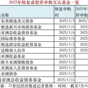 随着2025年1月1日互认基金新规生效,香港互认基金中因内地额度不足“封盘”的11只债基重新开放内地申购。