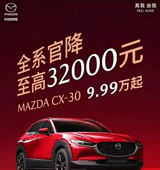 2024年,长安马自达对旗下车型开展过多轮优惠活动。例如,8月长安马自达宣布CX-5至高直降1万;CX-50至高直降1.7万元;销量主力马自达3昂克赛拉则至高直降1万元,2.0L起步价仅需8.99万元起;降价幅度最大的是马自达CX-30,限时官方降价3.2万元,售价9.99万元起。
