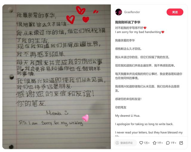 在另一些中国网友看来,他们从小学三年级开始学习英语,以“李华”为笔名,写过无数封以寄给外国友人信件为题的英语作文。“李华们”写了那么多年,现在,终于收到了回信。