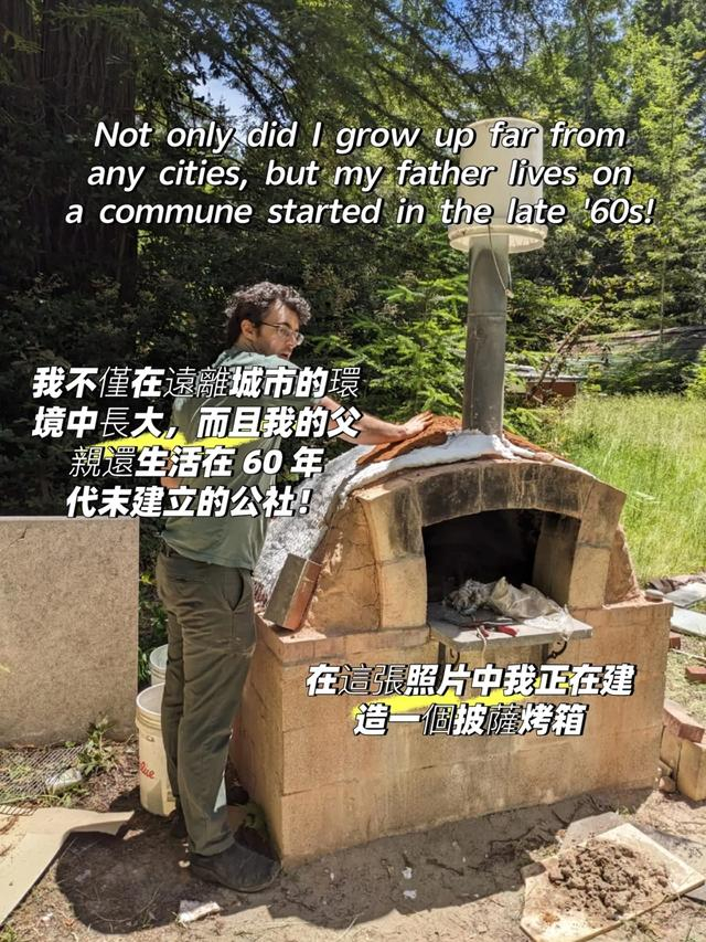 我在美国加利福尼亚州一个远离城市的地方长大。那是加州北部红衫林里一个非常偏僻的乡村小镇。60年代末,因为历史原因,近百万年轻人回归乡村,在加州北部建立了众多公社,我父亲就是其中之一。公社的生存环境恶劣,附近没有什么基础设施,成员们就自己建造烤箱、厕所、学校,同时还要种地、畜牧,以满足基本的生存需求。不管怎么说,从文化角度看,这个公社就蛮奇怪的,既充满着嬉皮士风格,又有点自由主义倾向,人们一方面生活在公社里,一方面又喜欢独处。