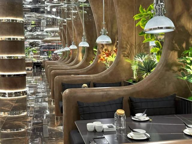 提起品牌受大众欢迎的原因,苏坤认为,菜品、装修和服务缺一不可。就拿大众津津乐道的门店装修来说,所有门店采取一店一设,比如滨港商业中心门店在设计上采用更加沉稳的咖色系风格,和今潮8弄百年里弄的主题颜色相匹配。此外,大厅里还摆放不少绿植,营造人与自然和谐相处的场景。整个餐厅的设计高级感十足,随手一拍就是大片。