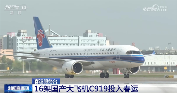 今年春运期间,有16架C919国产大飞机亮相春运,其中国航和南航的C919飞机都是首次服务春运。