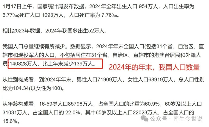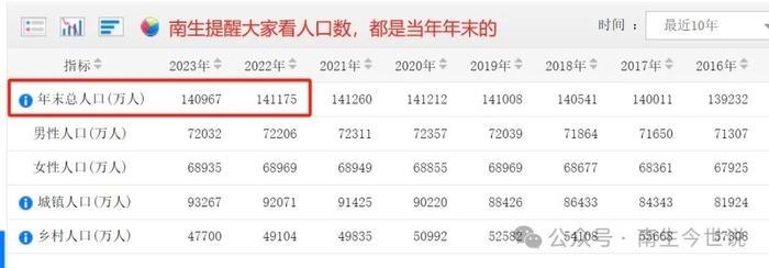 或许有人想到了本文刚刚提到的年中人口的计算规则,也就是计算相邻年末人口的平均数。南生可以明确地告诉您,这个方法也是错误。一个国家的总人口是没有办法做到天天统计的,只能采用两个年末的均值。