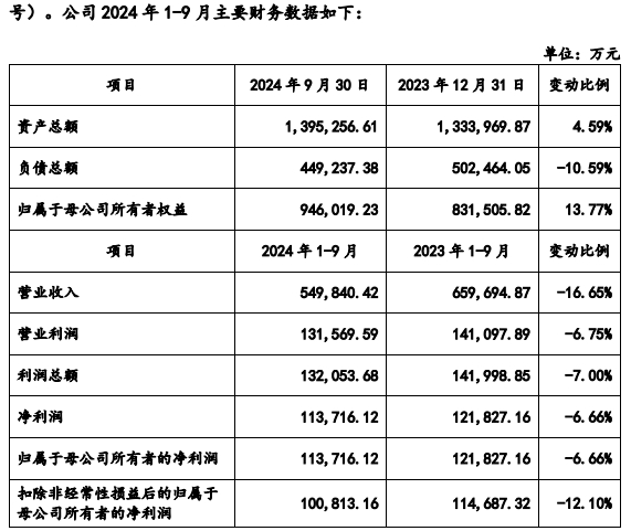 1月14日,深交所上市审核委员会2025年第1次审议会议结果公告显示,马可波罗控股股份有限公司(下称“马可波罗”)首发申请获上市委会议通过,公司拟在深市主板上市。根据马可波罗更新后的上会稿,2024年前三季度,公司营业收入54.98亿元,归母净利润为11.37亿元,与去年同期相比分别下滑16.65%和6.66%。公司预计2024年度实现营业收入约为72.3亿元至74.3亿元,同比变动-18.99%至-16.75%;归属于母公司所有者的净利润约为12.8亿元至13.5亿元,同比变动-5.39%至-0.22%。主要原因系建筑陶瓷行业市场竞争加剧,销售价格以及销量有所下降。