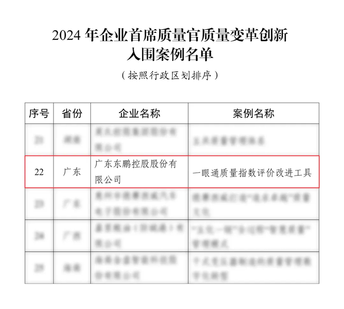 近日,为深入贯彻《质量强国建设纲要》的部署要求,并进一步完善企业首席质量官制度,中国标准出版社在总局质量发展局的指导下,启动了2024年全国企业首席质量官质量变革创新典型案例的征集与评审工作。东鹏控股凭借其创新的“一眼通质量指数评价改进工具”,成功入选此次质量变革创新入围案例名单。