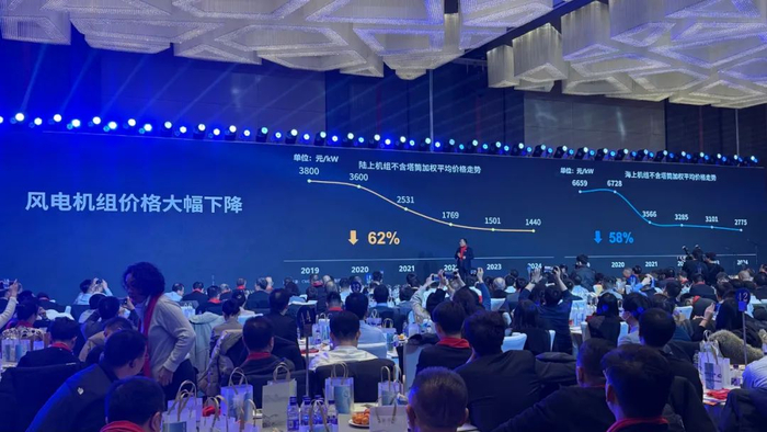 CWEA数据显示,2019年到2024年的五年间,陆上机组不含塔筒加权平均价格由3800元/kW跌至1440元/kW,下跌幅度达62%,海上机组由6659元/kW跌至2775元/kW,下跌58%。