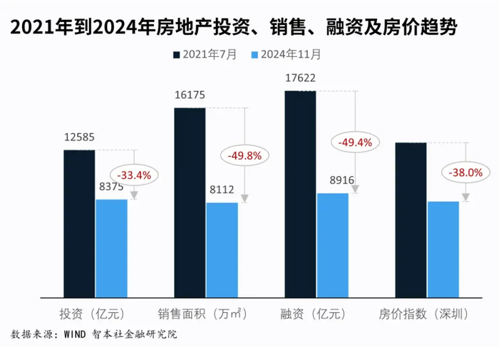 短短三年,房地产信仰崩溃,需求、融资腰斩,各大小城市房价普遍下跌三四成。