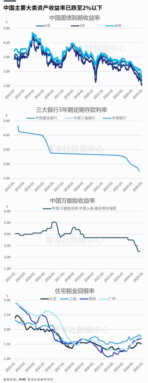 当前,国内金融资产的挑战是,随着利率持续下行,各类金融资产的收益率持续下降。从2025年开始,家庭资产配置面临一个世界性难题是:如何在低利率环境中投资,实现资产的保值增值?