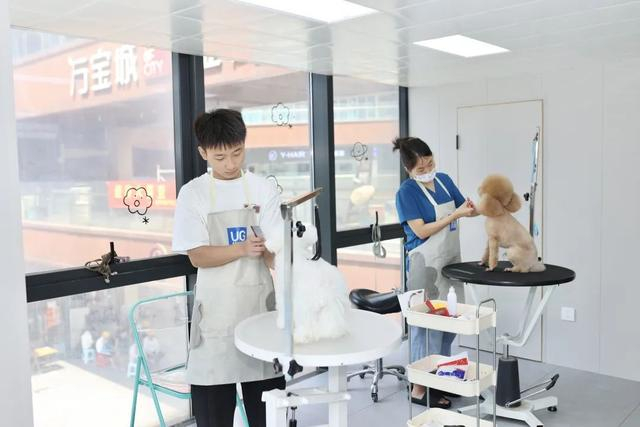 由于一只毛孩子的洗护和美容,通常要花费1-2个小时,就算现在加上老板自己,店里4人同时开工,依旧忙得脚不沾地,几乎每天都要加班到晚上10点。