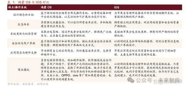 在之前的报告《大国铸重器,风劲扬帆正当时————国产操作系统深度复盘与 展望》中,我们复盘了海内外主流操作系统的发展历程,认为国产 OS 拨云见雾, 已实现立根铸魂齐头并进,桌面 OS 端,Deepin 和 openKylin 丰富国产桌面 OS 根社区种类;服务器 OS 端,Euler、Anolis 为国产服务器 OS 植根。而在智能终端方面,OpenHarmony 打造下一代智能终端操作系统根社区,原生鸿蒙生态持续扩张。 移动 OS 端,此前主要由 Android 和 IOS 主导市场,鸿蒙成功打造下一代智能 终端操作系统根社区。手机 OS 方面,Android 由于其免费开源的特性而被许多 手机厂商采用,并衍生出了众多基于 Android 的厂商定制系统,如小米的 MIUI,oppo 的 colorOS 等,根据 counterpoint 数据,Android 在 2023 年 7 月的 市场份额为 78%。IOS 是 iphone 手机的自用操作系统,凭借其良好的生态和流 畅性助力了苹果手机的热销,最新市场份额为 20%。Harmony(鸿蒙)是华为自 研的基于 Linux 内核的操作系统,在华为无法使用 Google 服务并放弃使用 Android 之后,华为手机全系搭载 Harmony,成为仅次于 Android 和 IOS 的手机 操作系统。平板 OS 方面,不同于手机市场 Android 领先于 IOS,在平板市场, 苹果凭借其 iPad 卓越的性能变现和强大的生产力,使得 iOS 的市场占有率高于 Android,根据 statcounter 数据,iOS24年 9 月最新市占率达到 55.49%,iOS 和 Android 合计占有平板 OS 市场 99.82%的市场份额。