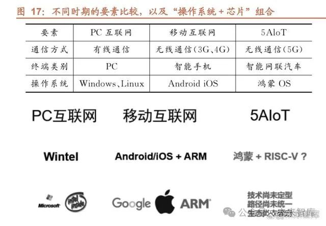 万物智联时代,我国迎来操作系统换道超车新机遇。根据 OpenHarmony 项目群 技术指导委员会主席陈海波,自从 1956年诞生以来,操作系统的内涵和外延不 断演进,大体经历了批处理、主机、PC 互联网、移动互联网和万物智联五个发 展时期。不同历史时期的操作系统在自身技术特征、人机交互方式、以及生态协 同方式上都各不相同。首先,万物智联时代相比移动互联网时代对操作系统有很 多差异化的特征诉求:一方面,终端操作系统需要适应智能设备种类和数量的高 速增长,并具备以用户为中心的多终端设备协同的场景化体验;另一方面,人工智能的快速发展正在推动终端操作系统成为善于记忆、善于学习、善于交流的陪 伴者与智能助理;并且,万物智联时代的设备和产业链生态更加庞大和复杂,终 端操作系统需要与之相适应的创新生态模式。过去在移动互联网时代兴起的操作 系统不一定能够适应万物智联时代的要求,万物智联时代为我国操作系统的发展 提供了换道超车的新机遇。其次,从创新组织形态上讲,开源模式又给我国操作 系统的发展带来了新的生命力。近年来,中国对于开源的认知和对全球开源的贡 献正在快速发生变化,正在从使用开源、参与开源,走向贡献开源甚至部分主导 开源。再次,我国操作系统在学术研究方面发展速度快,为我国操作系统技术纵 深发展提供了有利条件。近年来,国际操作系统顶级和重要学术会议,大陆高校 论文占比超过 20%,华人作者占比超过 40%,上海交通大学、清华大学等高校 在操作系统领域的全球顶会如 SOSP、OSDI 发表的高水平论文数量更是跻身国 际前列。 Harmony 面向万物智联时代而生,有望在 5AIoT 实现生态超车。根据《鸿蒙操 作系统打造生态的路径思考_谢克强》,我们正在进入 5AIOT(5G+AI+IoT)时代。 从有线到 3G、4G,计算平台在变化,操作系统也在变化。鸿蒙 OS 的战略方向即 需要面向 5AIOT 这一大趋势。从鸿蒙特性看,鸿蒙操作系统具有四大技术特性: ①分布式架构首次用于终端 OS 实现跨终端无缝协同体验;②确定时延引警和高 性能 IP 技术实现系统天生流畅:③基于微内核架构重塑终端设备可信安全;④通 过统一 IDE 支撑一次开发多端部署,实现跨终端生态共享。此外,推出的方舟编 译器具有支持多语言、跨平台、静态编译、灵活优化等能力,可以打造更高产能 和更高性能的编程环境,能够帮助开发者以更低的成本获得更好的应用体验,使 其十分符合未来的万物智联发展方向。