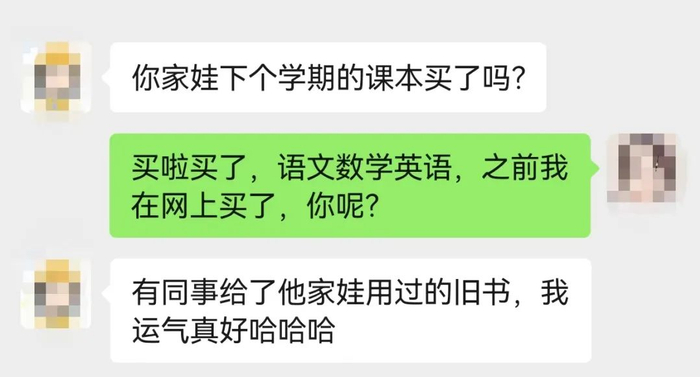 “前一天刚跟孩子说,周末一起去书店买课本,结果,前天孩子返校,就背回来好几本课本,说学校已经发下来了。这样马上就能用上了,避免了重复购买的浪费。”孩子读八年级的家长方女士表示。