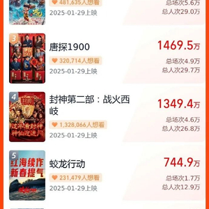 据了解,1月29日当天,共有6部电影上映。今年春节档上映的6部影片中,《封神第二部:战火西岐》《蛟龙行动》《哪吒之魔童闹海》《唐探1900》《射雕英雄传:侠之大者》五部均有IMAX版本,规模创下历年之最。