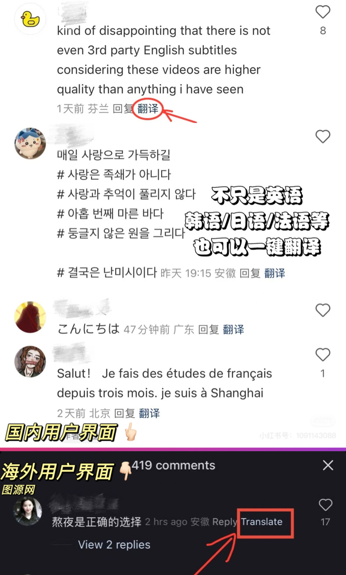 近日因TikTok禁令,小红书涌入大量海外用户,但因语言障碍,不少用户往往需要额外使用翻译软件才能和网友交流,为此大家纷纷催更平台能否上线翻译功能,现在有了~
