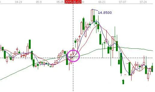 个股在大幅下调之后,反弹拉升然后出现缩量回踩,这时候如果5日均线和10日均线以及40日均线出现三线汇聚,形成金叉,出现再次上攻的迹象,那么就是大胆买进的时候。