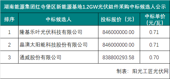 0.71元/瓦丨湖南能源集团1.2GW光伏组件采购中标候选人公示