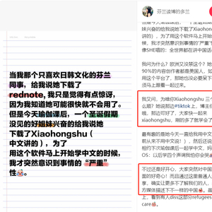 小红书软件以极快的速度推出评论区的翻译功能,让外国网友可以读懂中国网友的评论。一位名叫Nicole的外国网友热泪盈眶地说,他们的空间欢迎我们。中国网友评论说,中国的问候不会认为你们是抖音难民,只会认为你们是远方的朋友,给予关怀、温暖。
