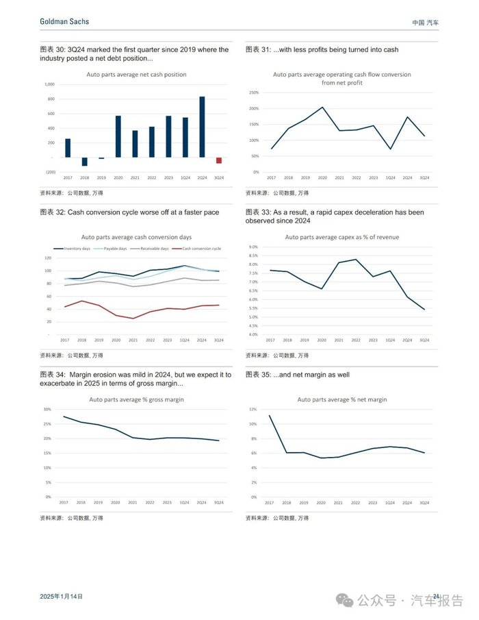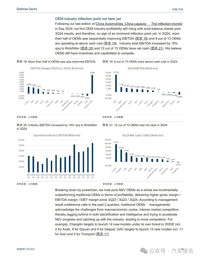 随着汽车补贴政策延续至2025年,我们预计今年乘用车市场零售销量将增长3%,新能源汽车渗透率将升至60%(意味着新能源汽车销量同比增长约30%),从而营造出良好的市场需求环境。与此同时,2025年将有120款新能源汽车新车型上市(2024年为112款),并且2024年整车厂盈利能力改善,这意味着未来将保持高强度竞争。