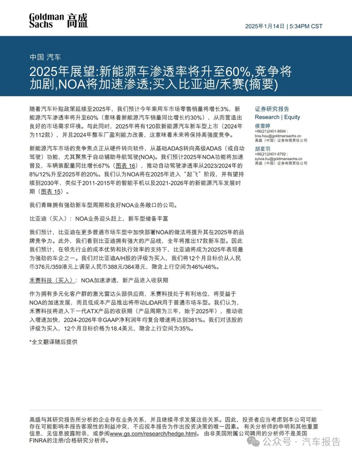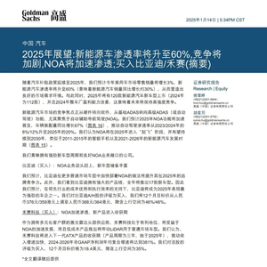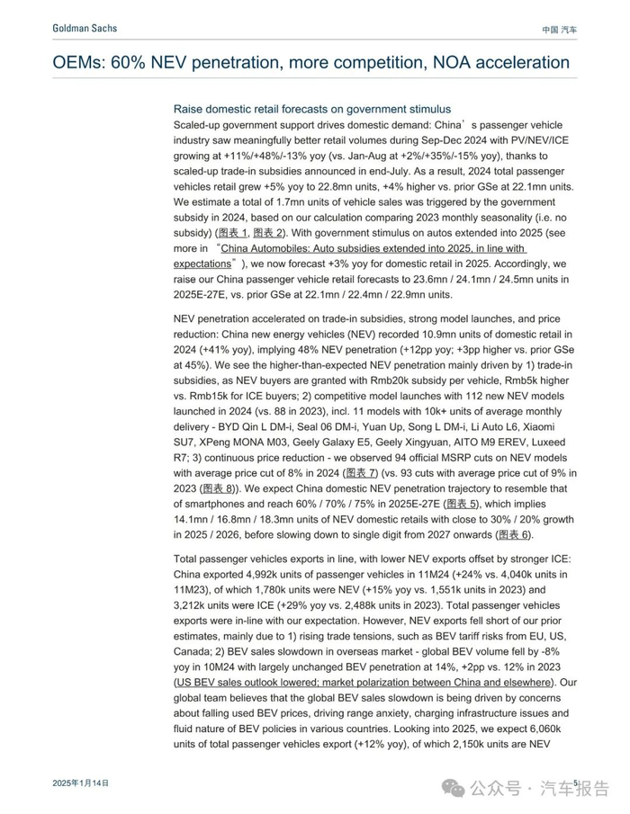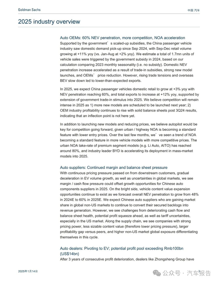 汽车报告:高盛-中国汽车行业2025年展望:新能源车渗透率将升至60%