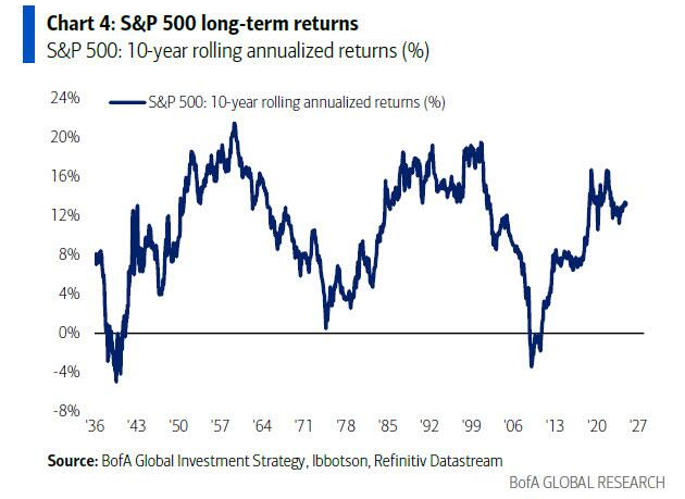 相比之下,同期美股长期回报率为13.1%,大宗商品为4.5%,投资级债券为2.4%,国库券为1.8%。这意味着除了美国国债以外,其他主要资产类别仍保持正回报。