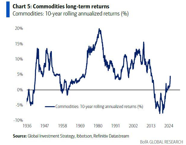 相比之下,同期美股长期回报率为13.1%,大宗商品为4.5%,投资级债券为2.4%,国库券为1.8%。这意味着除了美国国债以外,其他主要资产类别仍保持正回报。