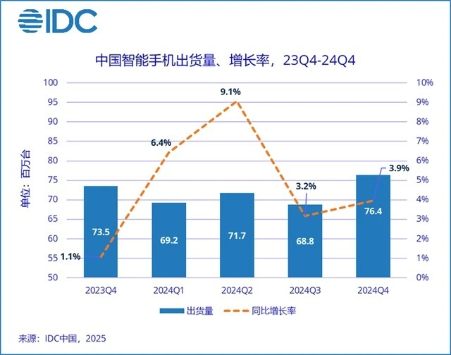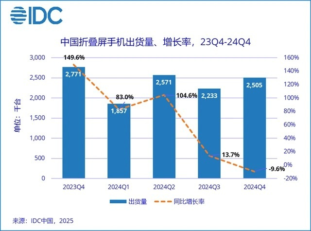 IDC:2024年中国智能手机市场出货量约2.86亿台,折叠屏手机出货量同比增长30.8%
