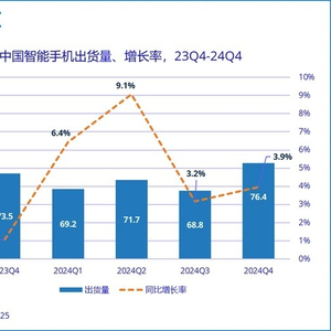 1月20日,IDC发布最新的手机季度跟踪报告,数据显示,中国智能手机市场在2024年展现出明显的复苏迹象,特别是在换机需求的逐步释放和消费政策刺激的推动下,市场的出货量有了显著回升。2024年全年中国智能手机市场出货量约2.86亿台,同比增长5.6%。