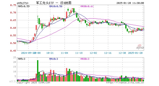 军工龙头ETF(512710)涨0.51%,半日成交额1.02亿元