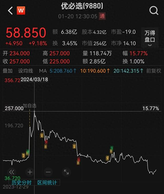 2023年12月29日,优必选上市首日收盘价90.85港元/股,略高于发行价90港元/股。2024年3月,优必选股价一度超过250港元/股,不到一年时间,又跌至60港元/股以下,低于发行价。