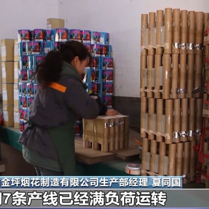 萍乡市金坪烟花制造有限公司生产部经理 夏同国:从2024年9月开始,我们7条产线已经满负荷运转,每天的产量能达到2000箱,但还是处于一个供不应求的状态。