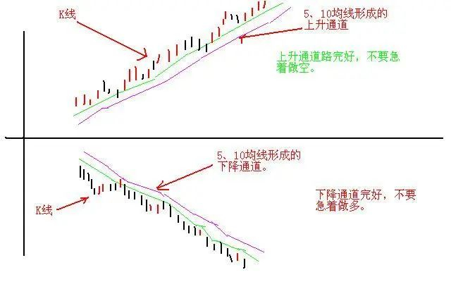 条件1、在3分钟图上,下降通道已封闭,5、10、20均线已走平粘合,正在靠近红色的60均线。2、在5分钟图上,红色60均线开始走平,或已经走平。