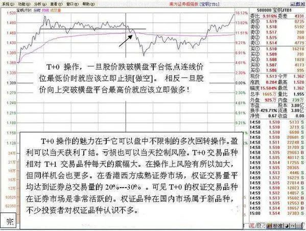 三、假设你持有某股10000股,每股10.00元,同时你手头也有现金10万元。今天开盘后,该股在上午跌到了9.60元,你认为它不会再下跌,仅是幅度稍大的震荡,所以就在9.60元的时候,用10万中的9.60万元再买了此股10000股。在下午,该股果然回升到了10.00元,此时,你认为该股在近日将是震荡为主,就以10.00元的价格抛了原先持仓的10000股。这样,你到收盘时,还是持有该股10000股,全天股价收盘与开盘一样,没有涨跌,而你却盈利了4000元。