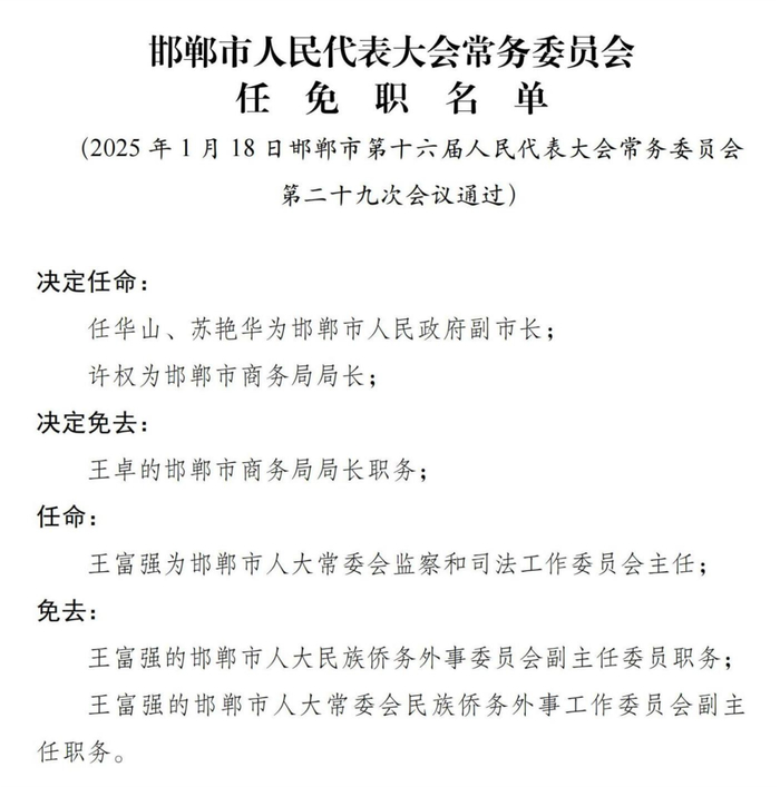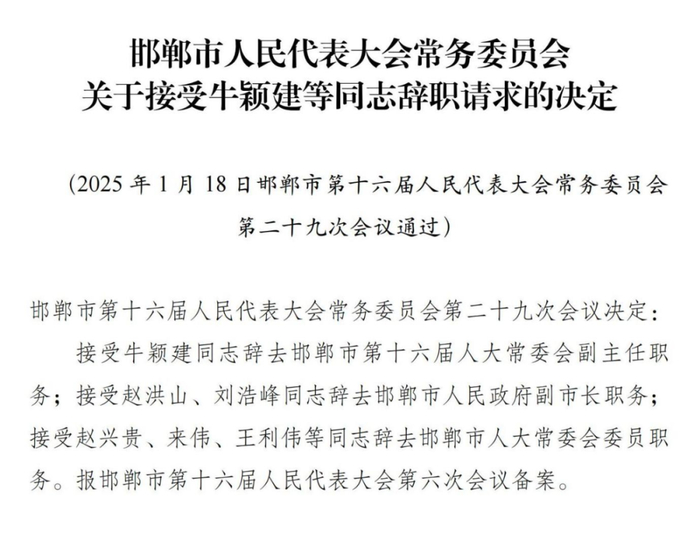 邢台市人民代表大会常务委员会免职名单
