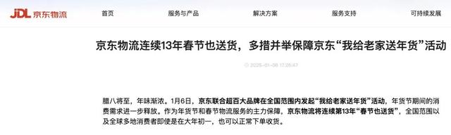 京东物流宣布将连续第13年“春节也送货”,全国范围以及全球多地消费者即使是在大年初一,也可以正常下单收货。为应对年货节期间的物流高峰,京东物流提前布局,整合多种基础设施和基础运力资源,并借助数智化技术强化一体化供应链物流服务。