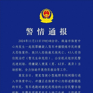 2024年12月27日,珠海市中级人民法院依法对被告人樊维秋以危险方法危害公共安全案进行了公开审理,并于当日宣判,以以危险方法危害公共安全罪判处樊维秋死刑,剥夺政治权利终身。