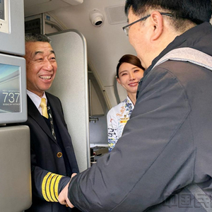 迎接李忠友完成退休前的最后一个航班