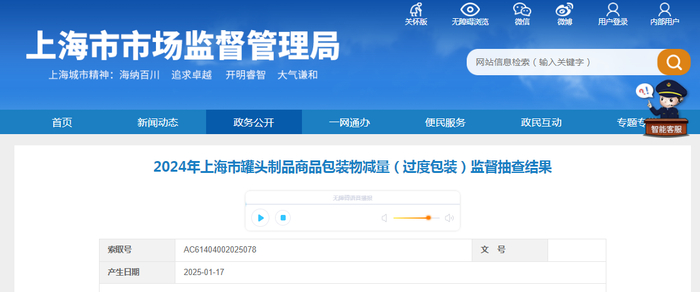 2024年上海市罐头制品商品包装物减量(过度包装)监督抽查结果