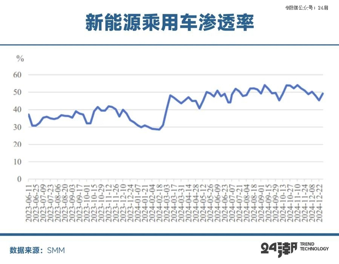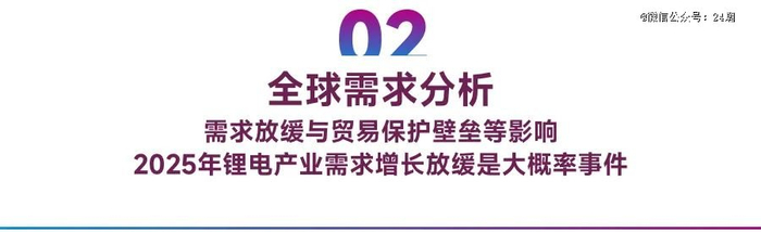 综上所述,由于特朗普上台对华加征关税,欧洲反补贴调查,贸易保护主义抬头影响全球电动化进程叠加国内目前新能源汽车内销渗透率已经超过50%,2025年动力电池主导的锂电产业需求增长趋势放缓是大概率事件。