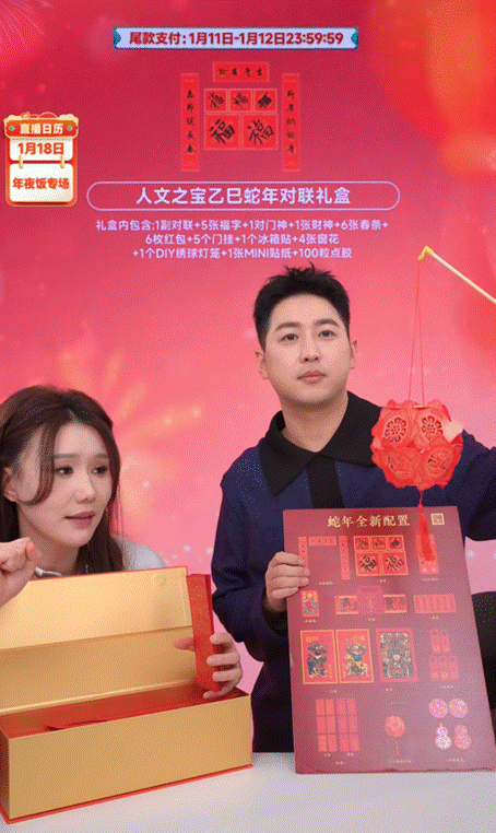 贴对联的春节习俗流传至今,也是“年味”的重要来源之一。这个年货节,李佳琦直播间共售出近2万副对联,云南的腊梅、雪柳成为直播间用户装点春节氛围的花卉首选。此外,李佳琦直播间精选了600多个新年礼盒类产品,以满足消费者春节拜年、走亲访友的需求。