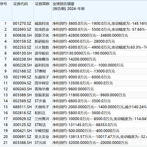 上述公司也同步发布了业绩预告,公司业绩均呈现不同程度的亏损。具体而言,铖昌科技、天微电子(688511.SH)预计2024年净利润同比下滑均超过100%;兰州黄河(000929.SZ)净利润同比下滑变动幅度为81.93%-114.04%;双成药业、亚太实业(000691.SZ)净利润也呈现不同程度的同比下滑。