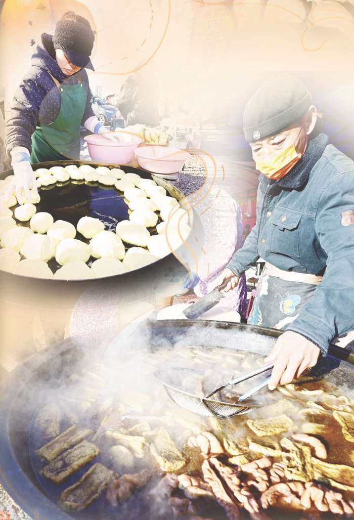 天光已大亮,大集上人潮涌动,叫卖声此起彼伏,卤煮、毛鸡蛋、羊杂汤、奥尔良烤鸡等各种美食的香味在空气中弥漫开来,升腾的热气点燃市井烟火。