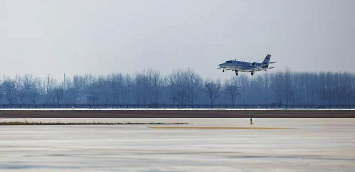 1月13日,亳州机场开始校飞工作。图为首架飞机准备降落。(本报资料图片)