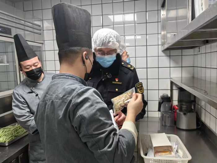 中国质量新闻网讯 1月15日上午,青岛市市南区开展“直击后厨、护航食安”——“年夜饭”专题整治行动,市南区市场监督管理局会同相关媒体对青岛味庄酒店管理有限公司味语膳房闽江路店和青岛蓝港海鲜厨房酒店管理有限公司云霄路店2家年夜饭接待餐饮服务单位进行突击检查。