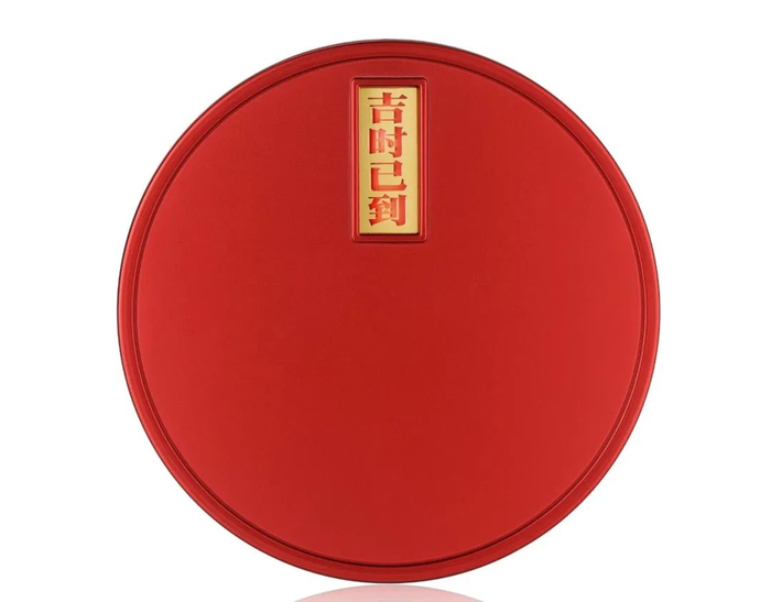 当你轻转盒盖时,会依次出现八个祝福语;当旋转到“吉时已到”时, 灯光同步亮起,寓意美好正式开始。
