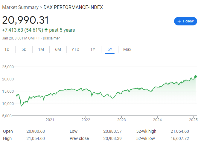 作为欧洲经济的“火车头”,德国近年来经济增长持续疲软,但股市却十分昂扬。数据显示,自2023年以来,德国DAX股市已累计上涨50%。