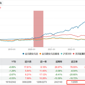 下表是“金元顺安元启004685.OF”的年度收益和排名情况: